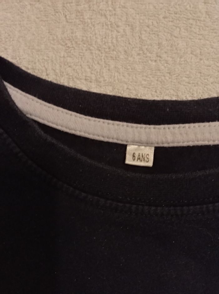 Cule noir mange longues avec inscription devant décoratives sur les manches voir photos taille 6 ans couleur noir