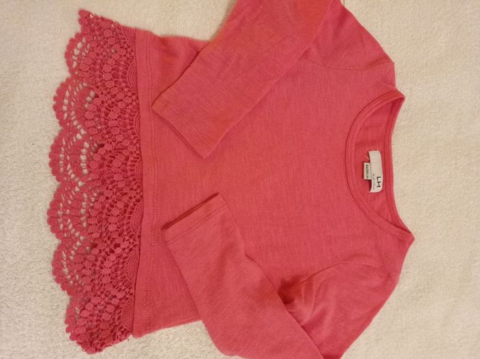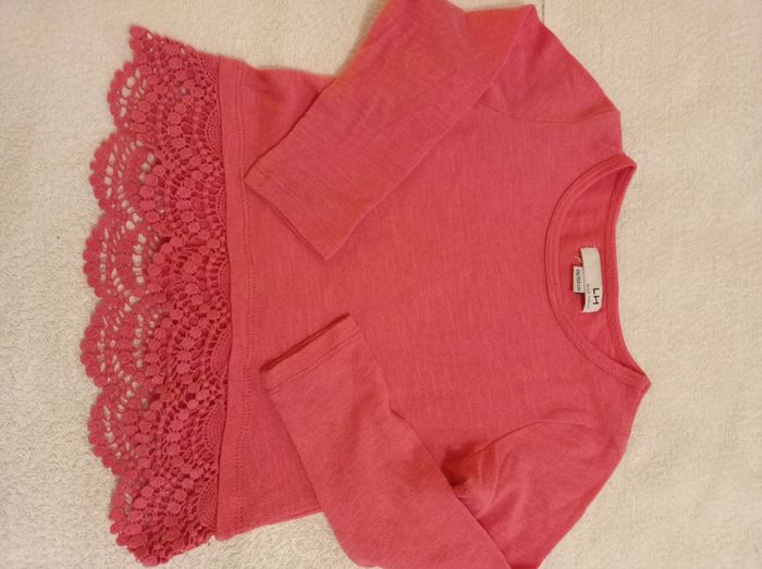 Pull rose manches longues avec broderie devant derrière un peu plus long que devant voir photos super jolie taille 4 ans 104 cm marque la Halle