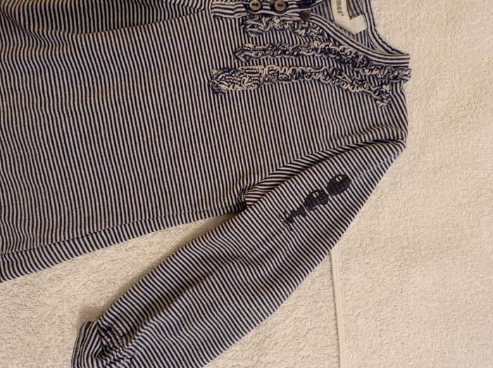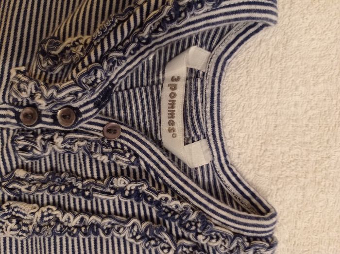 Pull fille super jolie marque 3 pommes taille 12 mois blanc à rayures voir photos avec motif sur les manches - photo numéro 9