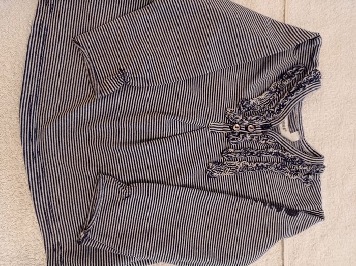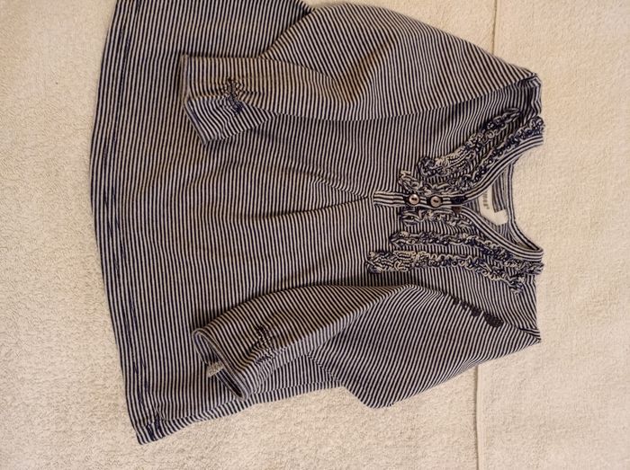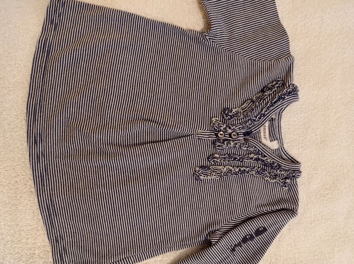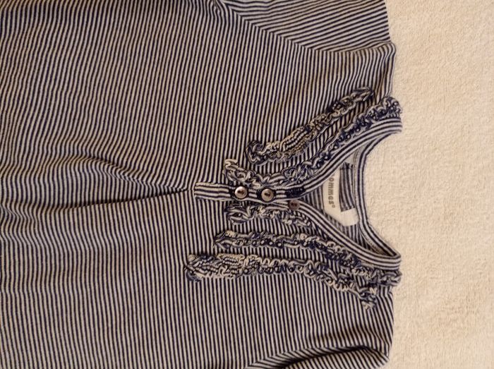 Taille 12 mois 74 cm pull manches longues blanc à rayures bleu voir photos super jolie marque trois pommes