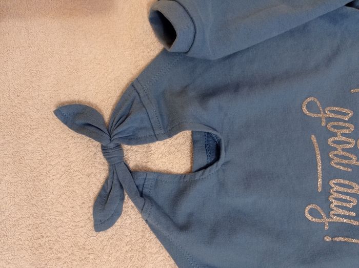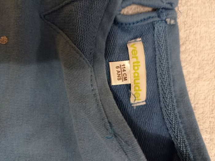 Pull manche longue couleur bleu porter trois fois voir photos il se nous devan Vertbaudet taille 6 ans 114 cmt avec inscription brillante voir photos - photo numéro 8