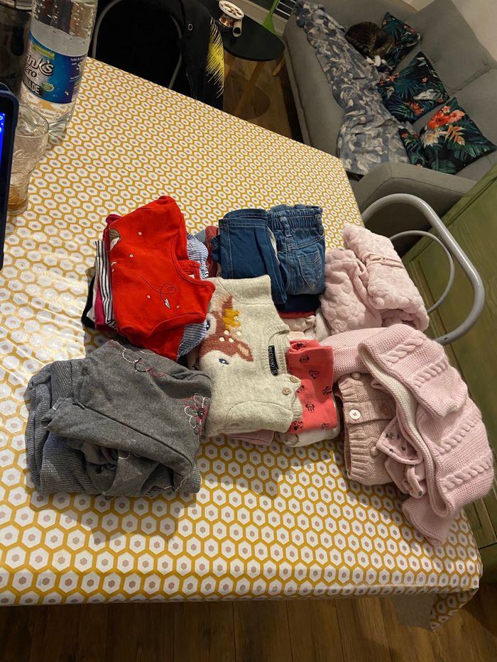 Trois. Veste 2 de robe 3pull 1 pyjama 1 ensemble 5 T-shirt manches longues 1 T-shirt manches courtes 4 Jean 6 legging