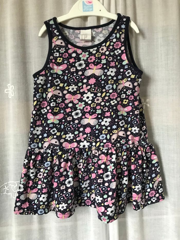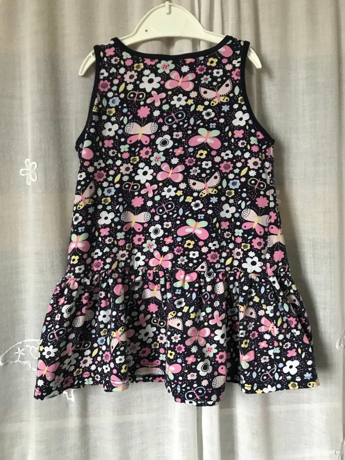 Robe d’été bleu marine fleurie rose papillons jaune Taille 2 ans 86 cm H&M