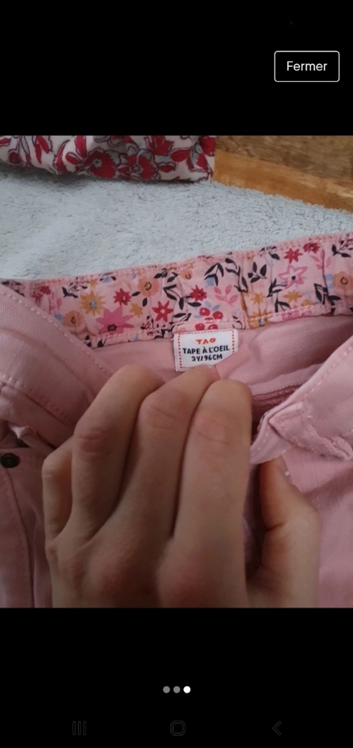 Pantalon fille tape à l'œil slim 3 ans rose mini tache au genou qui ce voie à peine