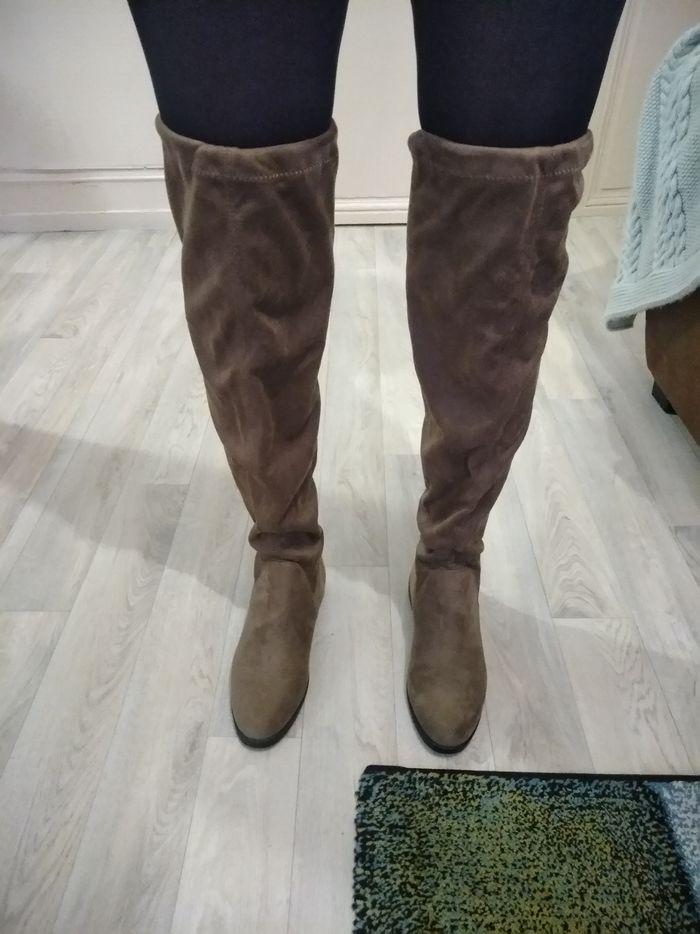Bottes suedine montante cuissardes marron neuve jamais porté - photo numéro 4