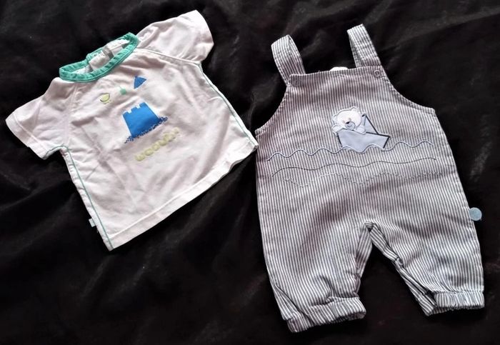 ENSEMBLE 3 MOIS composé d'un tee shirt OBAIBI, pressions dans le dos et salopette, pressions entrejambe