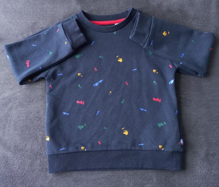 Sweat bleu marine avec ses petits motifs de couleurs. En très bon état.swea