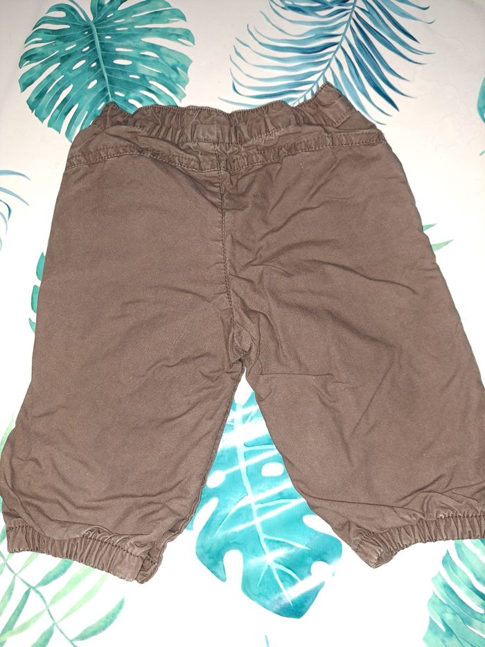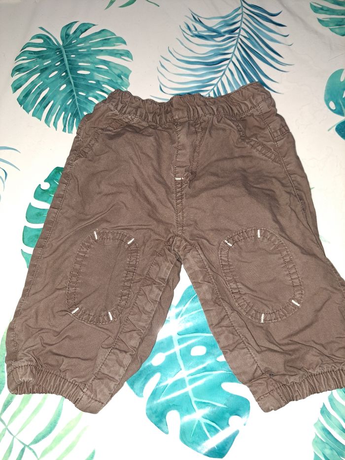 Pantalon doublé en taille 6 mois de la marque Petit Kimbaloo. Ouverture entre jambe pour changer la couche très pratique. Pressions ok.