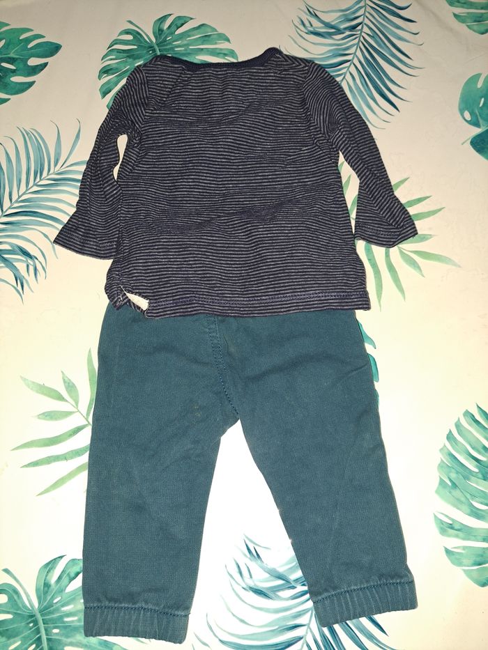 Ensemble garçon le haut de la marque Creeks en taille 6 mois et le pantalon de la marque Pat et Ripaton. Le tout en très bon état.