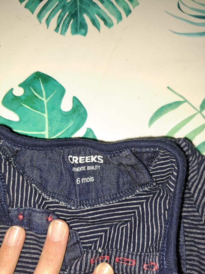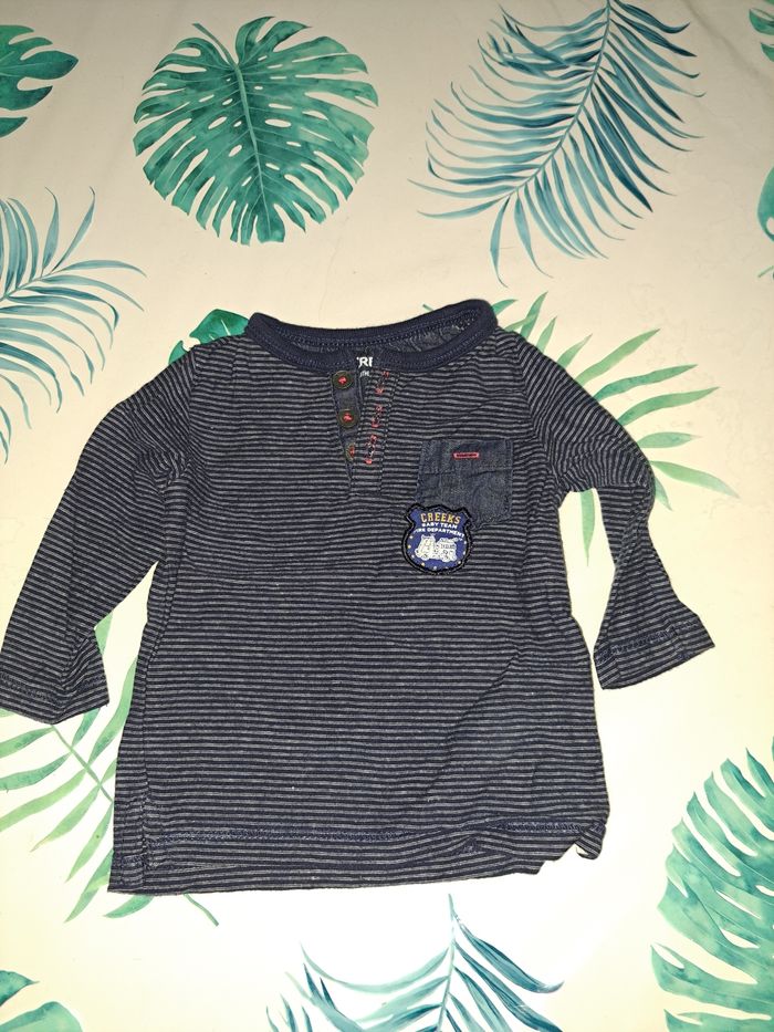 Ensemble garçon le haut de la marque Creeks en taille 6 mois et le pantalon de la marque Pat et Ripaton en taille 3 mois. Le tout en bon état.