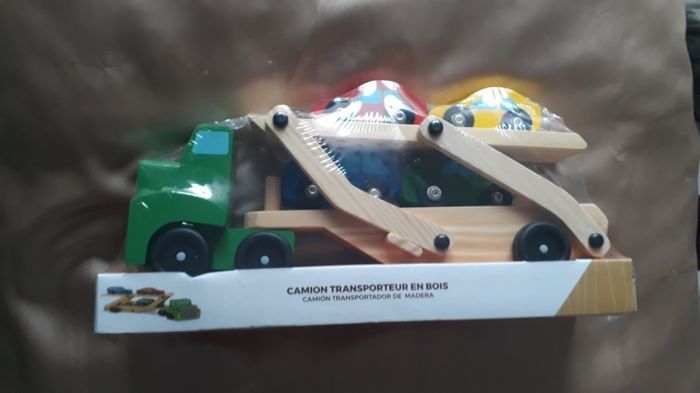 Camion transporteur en bois Inclus également 4 voitures NEUF 30 euros #picolo354jouetsenfants #picolo354véhicules