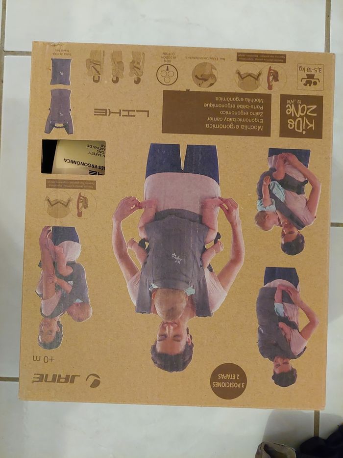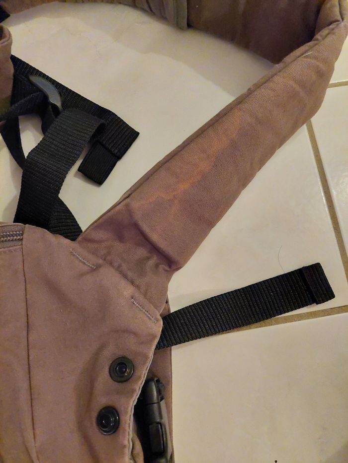 Porte bébé ergonomique de 3.5 à 18 kg 3 positions, petite capuche pour la position ventrale Juste une tâche sur la sangle voir photo