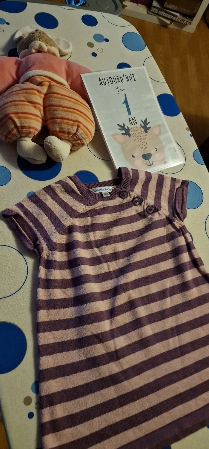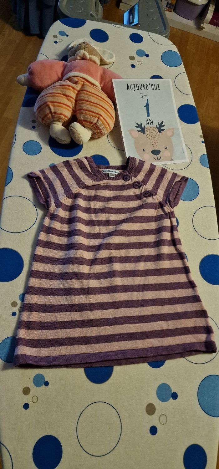 Robe vertbaudet rose pâle et lila très bonne état taille 12mois