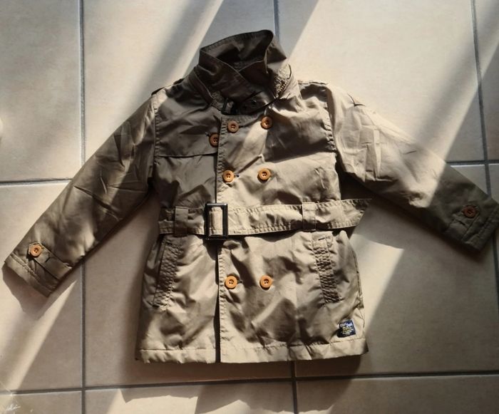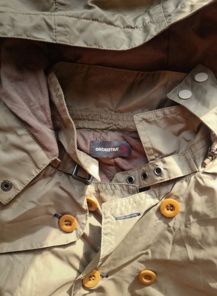 Trench, parka, imper enfant mixte Orchestra Jamais porté, neuf. Ouverture boutonnée et ceinture ajustable 2 poches devant Capuche amovible par fermeture éclair