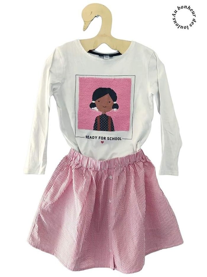 6 ans ensemble Okaïdi teeshirt sequins et jupe