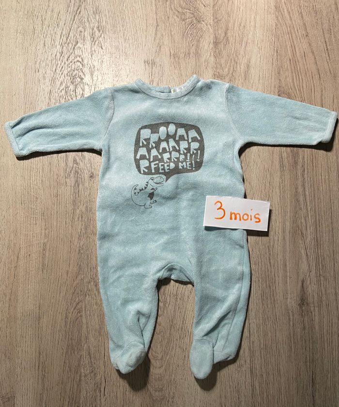 Pyjama velours bleu motif dinosaure qui parle Kitchoun 3 mois