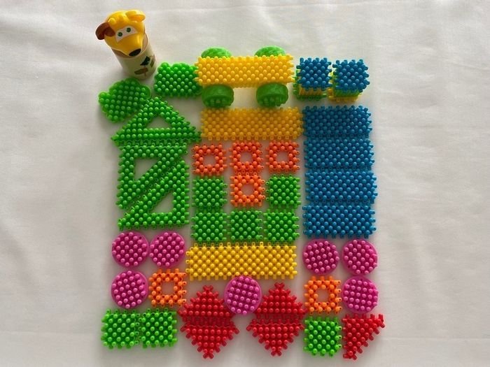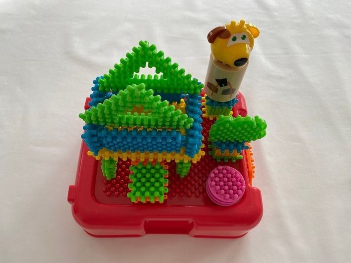 Avec ce lot de 42 pièces vos enfants pourront laisser libre court à leur imagination pour créer des véhicules, des personnages, des maisons, des animaux... Vendu avec la malette qui peu servir également de support de jeu. Attention : la malette présente quelques petites traces d'usures. Dès 18 mois playskool3