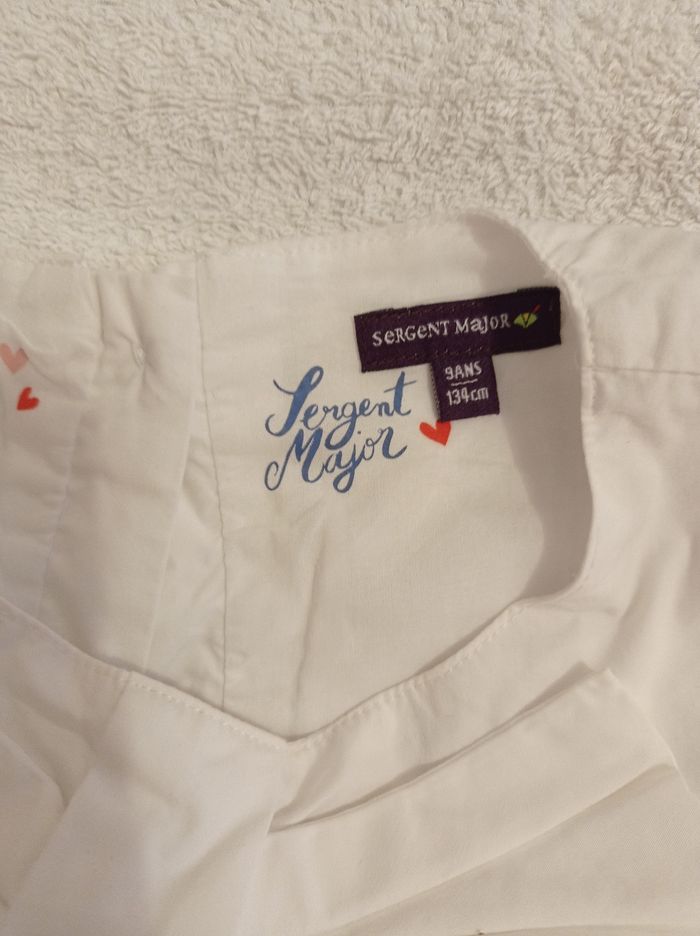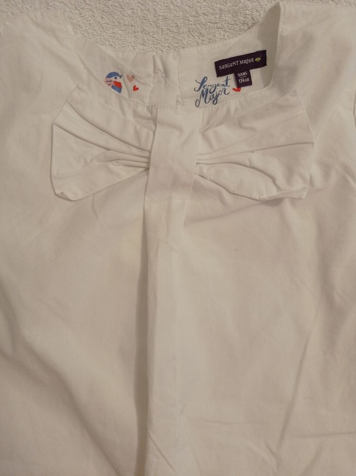 Robe blanche le bas de la robe bleu voir photos robe doublée marque sergent major taille 9 . ans. avec jolie nœud sur le devant et plusieurs boutons dans le dos magnifique . Robe doublée avec le devant en nu
