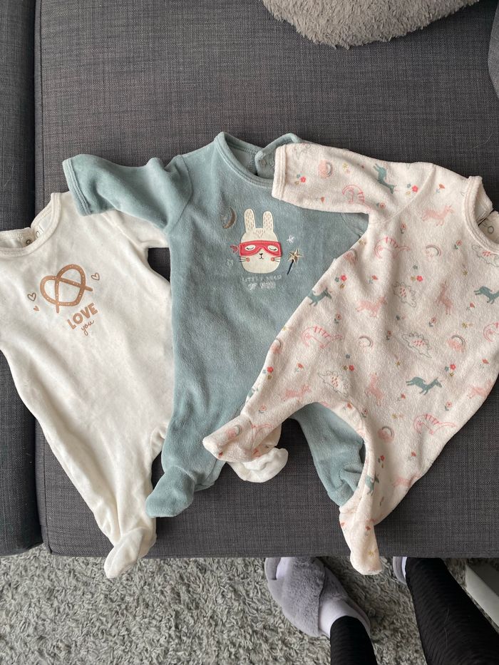 3 pyjamas bébé fille en 1 mois (52-55 cm) de la marque kiabi Très bon état car très peu porté