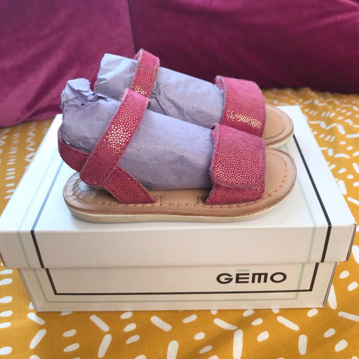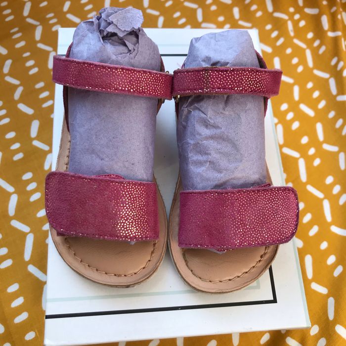 Pointure 21 Sandales roses violines fermeture à scratch En cuir véritable et semelles intérieures à mémoire de forme Boîte d’origine incluse Quelques petites traces d’usage visible sur les photos. Photos supplémentaires possible sur demande