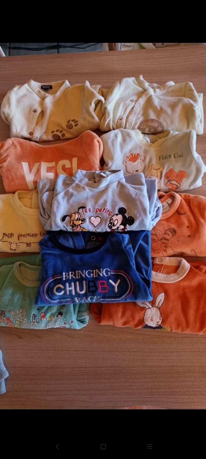 Lot de pyjamas en 1 mois. A la fois garçon et mixte Certains bon état d'autre un peu plus usé