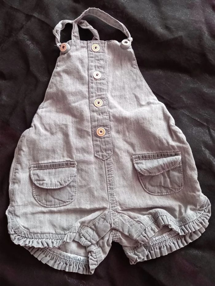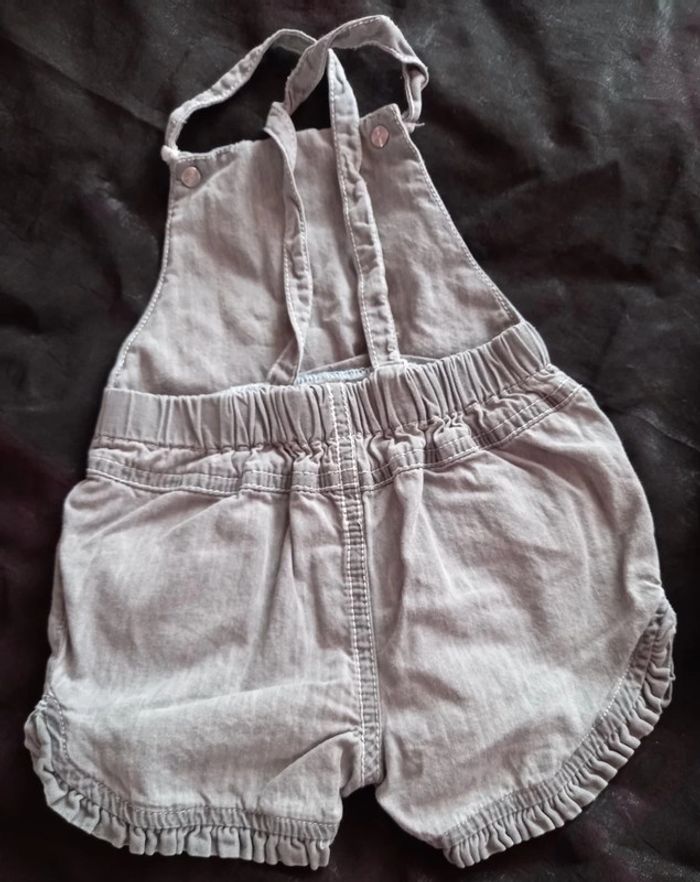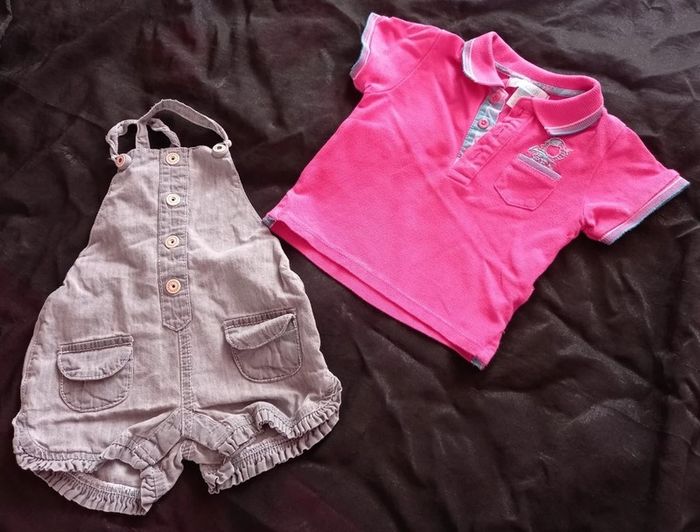 ENSEMBLE 3 MOIS composé d'une salopette courte VERT BAUDET, élastiquée dans le dos, , bretelles à boutons et d'un polo OBAIBI