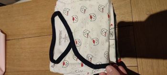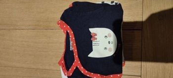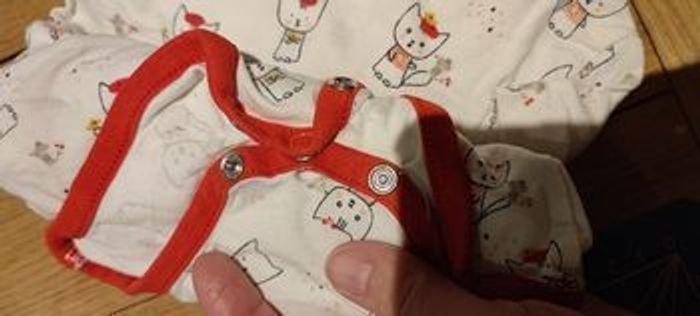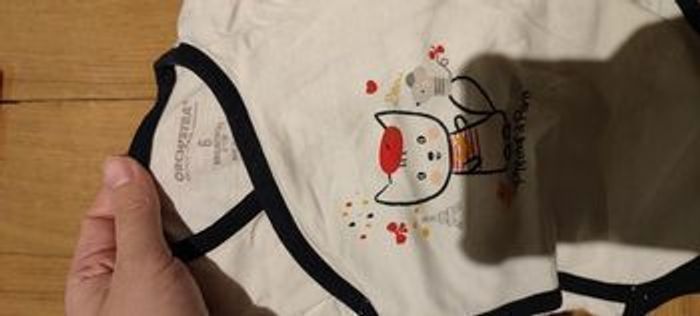 7 bodies manches courtes Marque orchestra collection petit chat (achetés neuf en 2022) Ils sont en très bon état mais 2 ont des petites tâches sur l'encolure et un est un peu dechiré au niveau des pressions