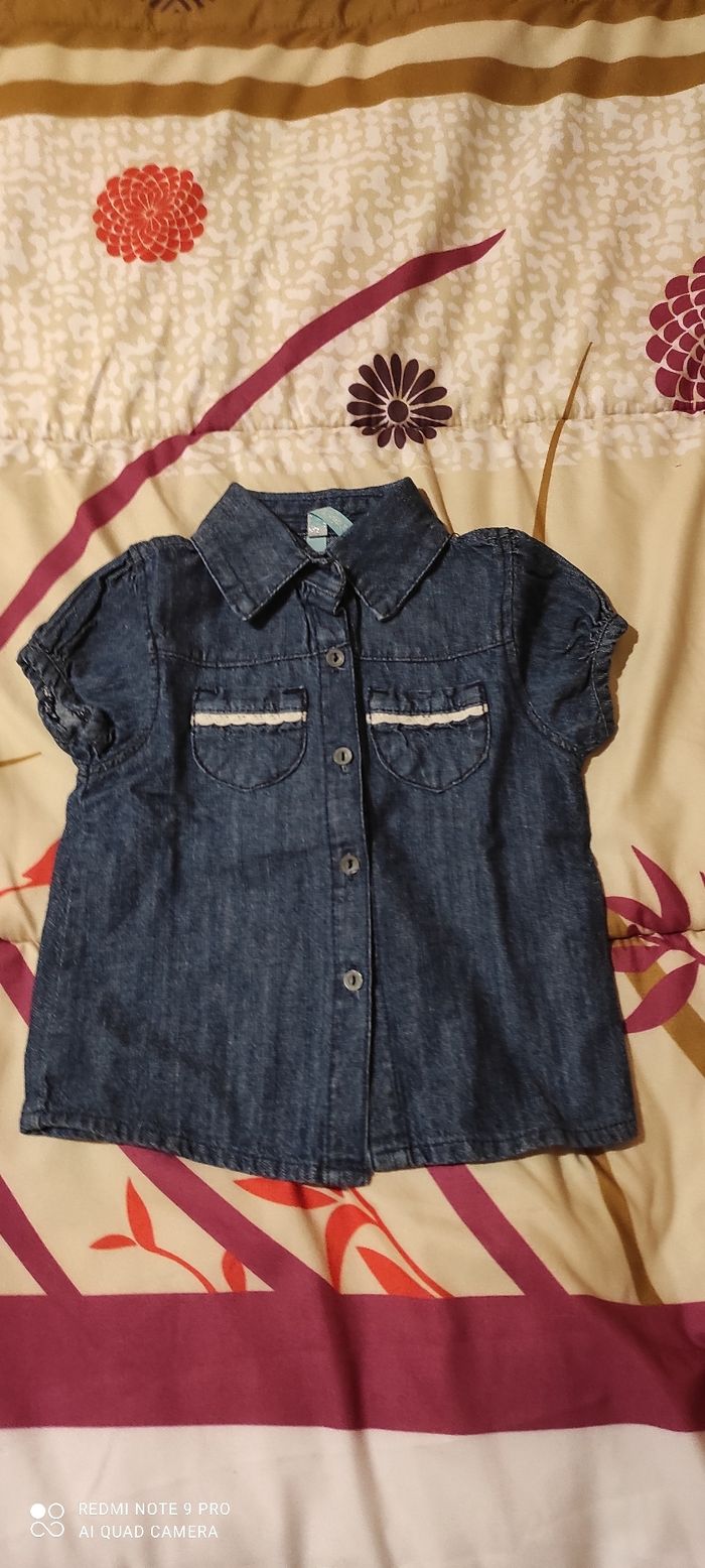 Chemisier en jean très bonne état porté 1 seul fois, taille 18/ 24 mois