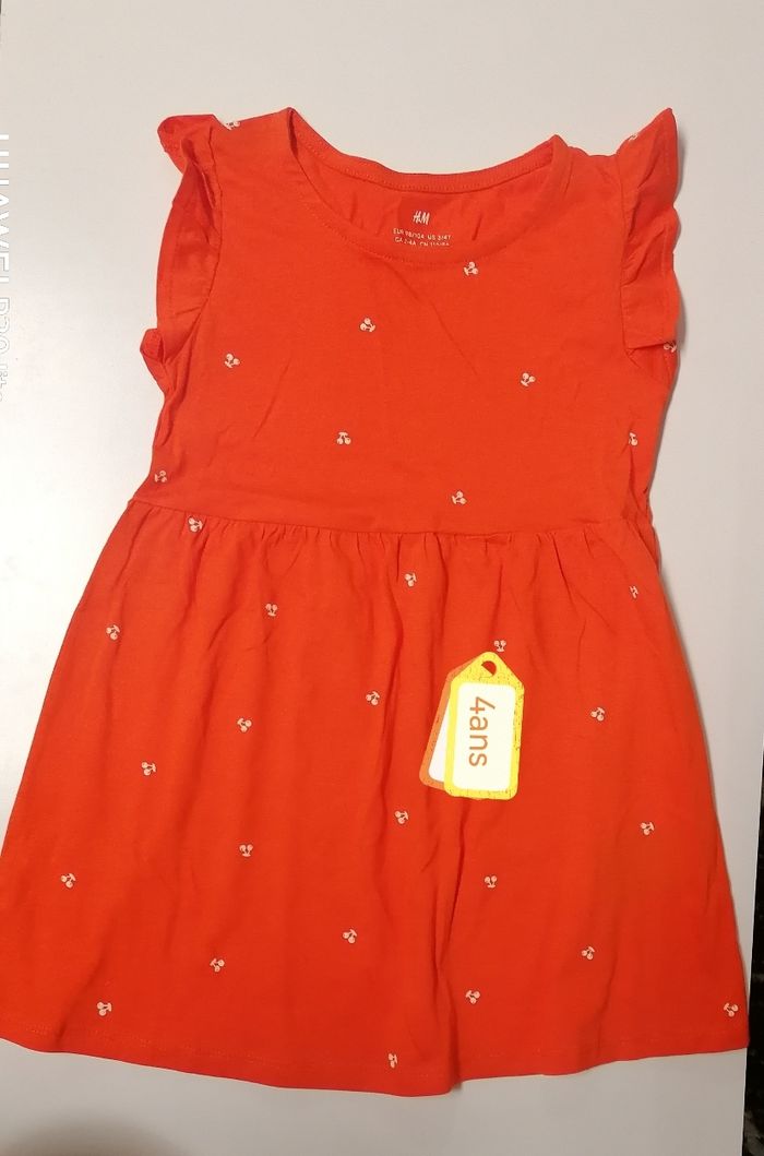 Robe été filles. H&M 2/4ans. 98/104cm Corail :blanc. Manches débardeur 100%coton. Jamais porté 6.50€
