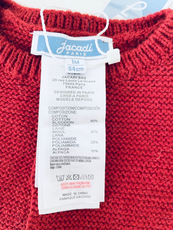 Magnifique cardigan Jacadi, taille 1 mois. Belle matière. Article neuf avec étiquette. Prix d’achat 45€.