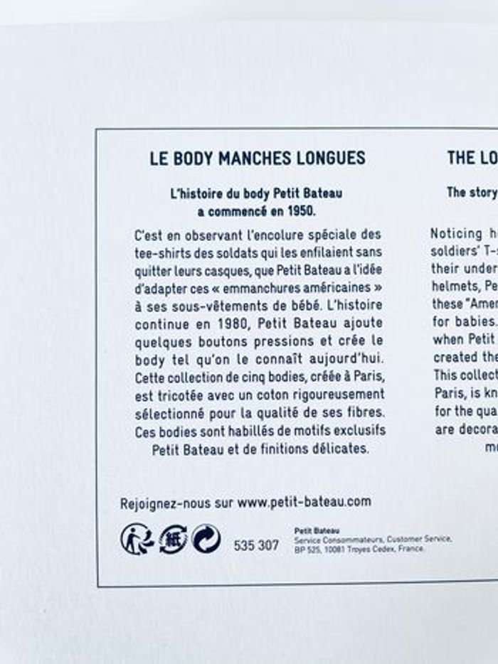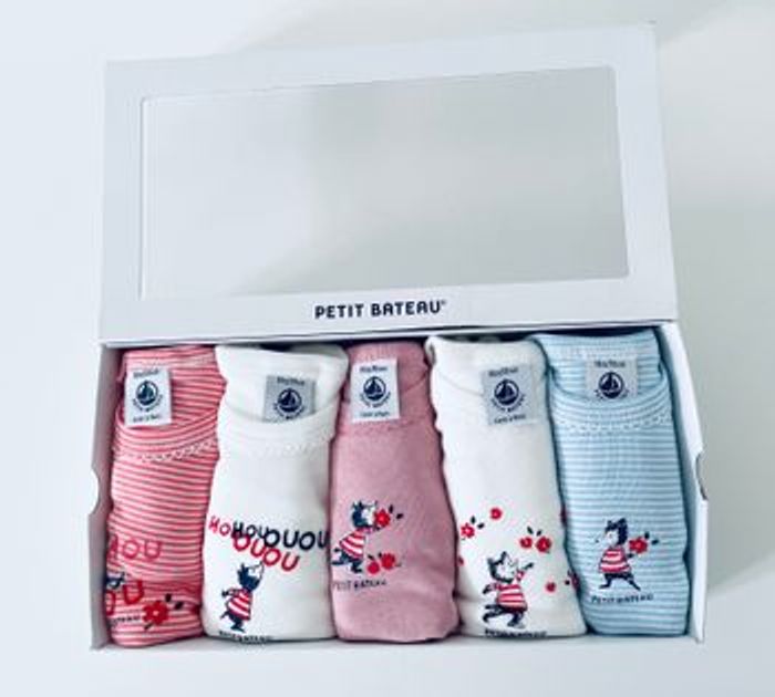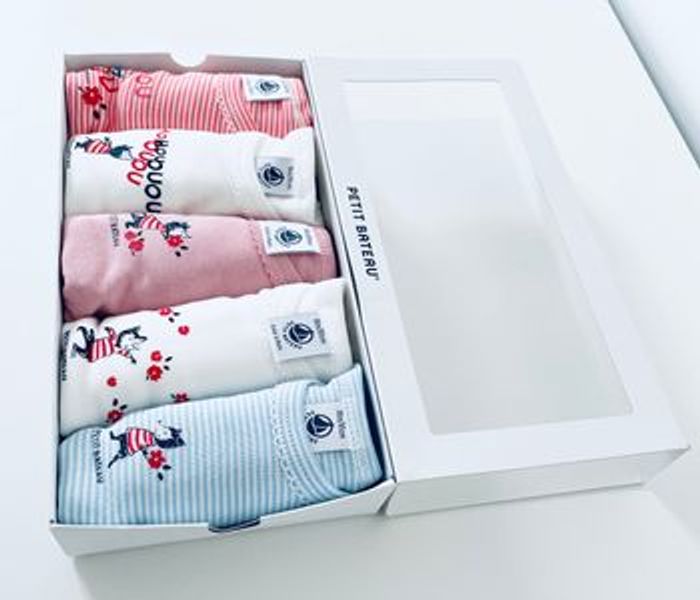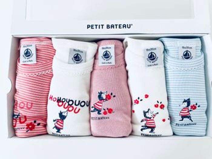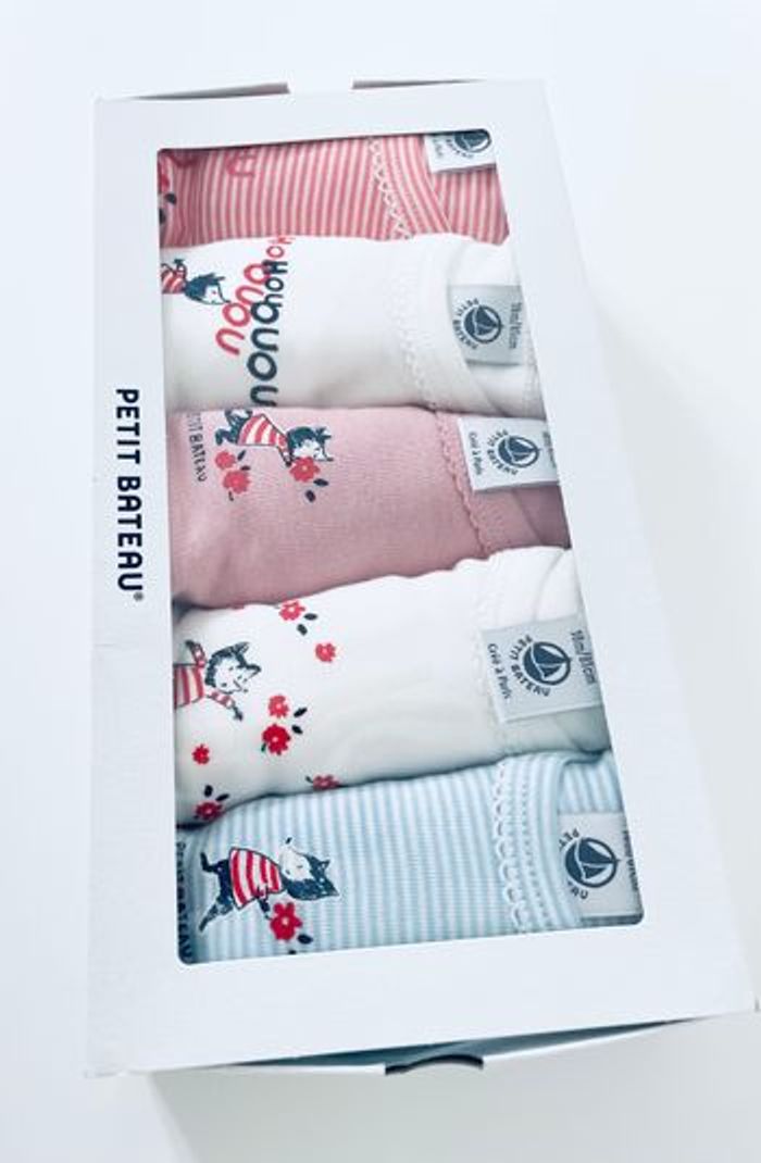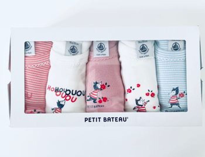 Magnifique lot de 5 bodies manche longue Petit Bateau, taille 6 mois. Article neuf avec étiquette.