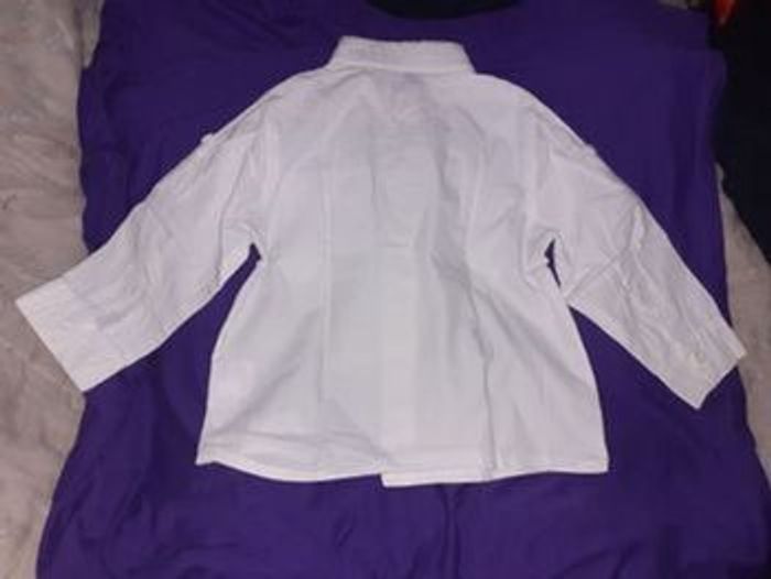 Réduction activer Vend chemise manche longue. Bien blanche elle na pas pris de couleur des autres vêtements donc elle est vraiment bien blanche. Sur la photo n°2 on aperçoit des traces bleu mais cela est normal. Se sont de petits dessins. Sur chaques manches il y a un bouton cest si vous voulez plier les manches et accrocher à se bouton pour pas que la manche descend. Taille 24 mois Marque tape a l'oeil Laver avec de la lessive spéciale pour bébé et sanythol spécial linge bebe. Maison non-fumeur Mis sur plusieurs sites de ventes