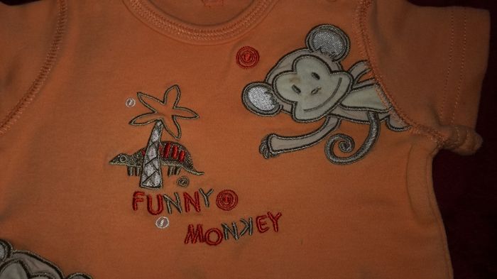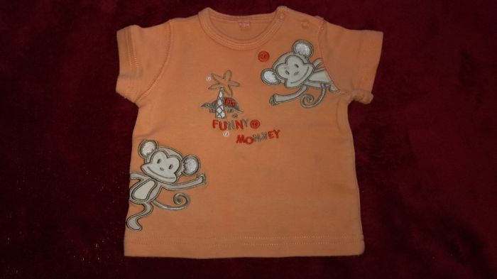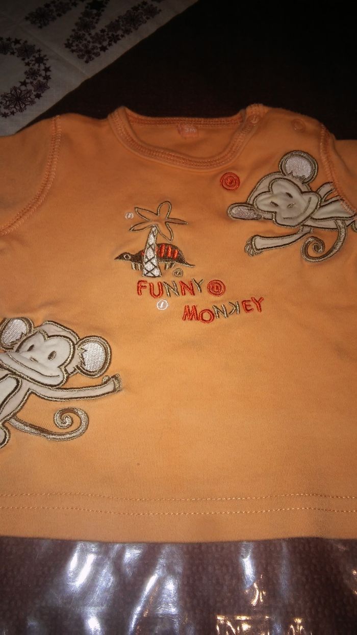 Tee-shirt manches courtes orange Funny monkey Traces de décoloration 3 mois garçon Sans marque
