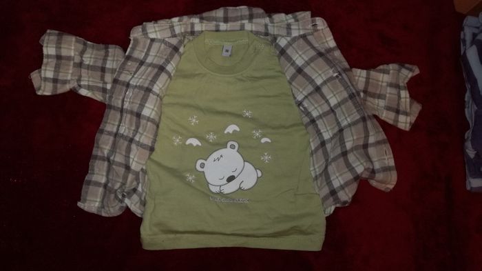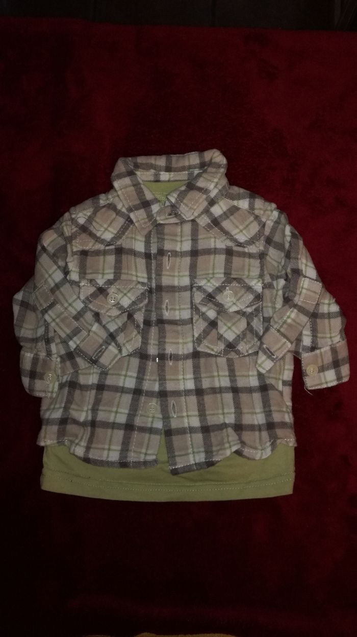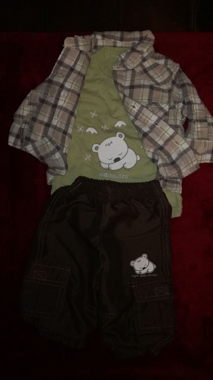 Ensemble pantalon détente marron petit dodo d'hiver petites poches sur les côtés Chemise à carreaux avec tee shirt vert intégrè 3 mois garçon Sans marque