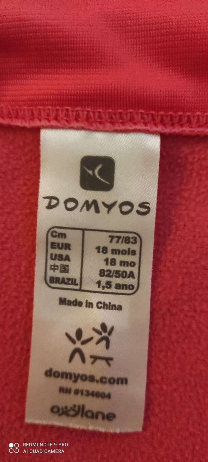 Veste rose légère marque Domyos très bonne état porté peut de fois, taille 18 mois.