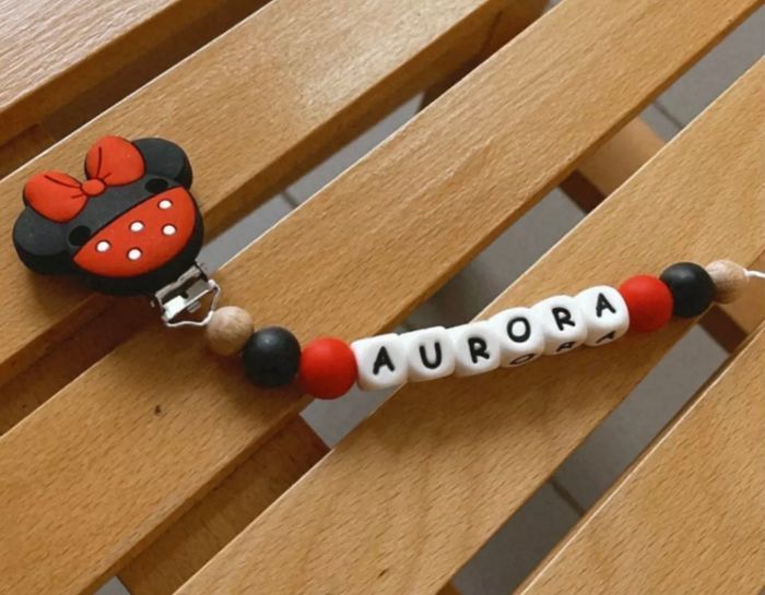 Attache tétine personnalisé esilicone. au souhait de l’acheteur Possibilité de créer avec d’autre modèle ( Marie , mickey, roi lion , minnie , thème noël plein d’autres) n’hésitez pas à me demander et regarder mon dressing. Une photo vous sera envoyée avant l’expédition pour vous ayez un aperçu du rendu. Tous les produits sont réalisés avec du materiel spécial conçu aux bébés , enfants.