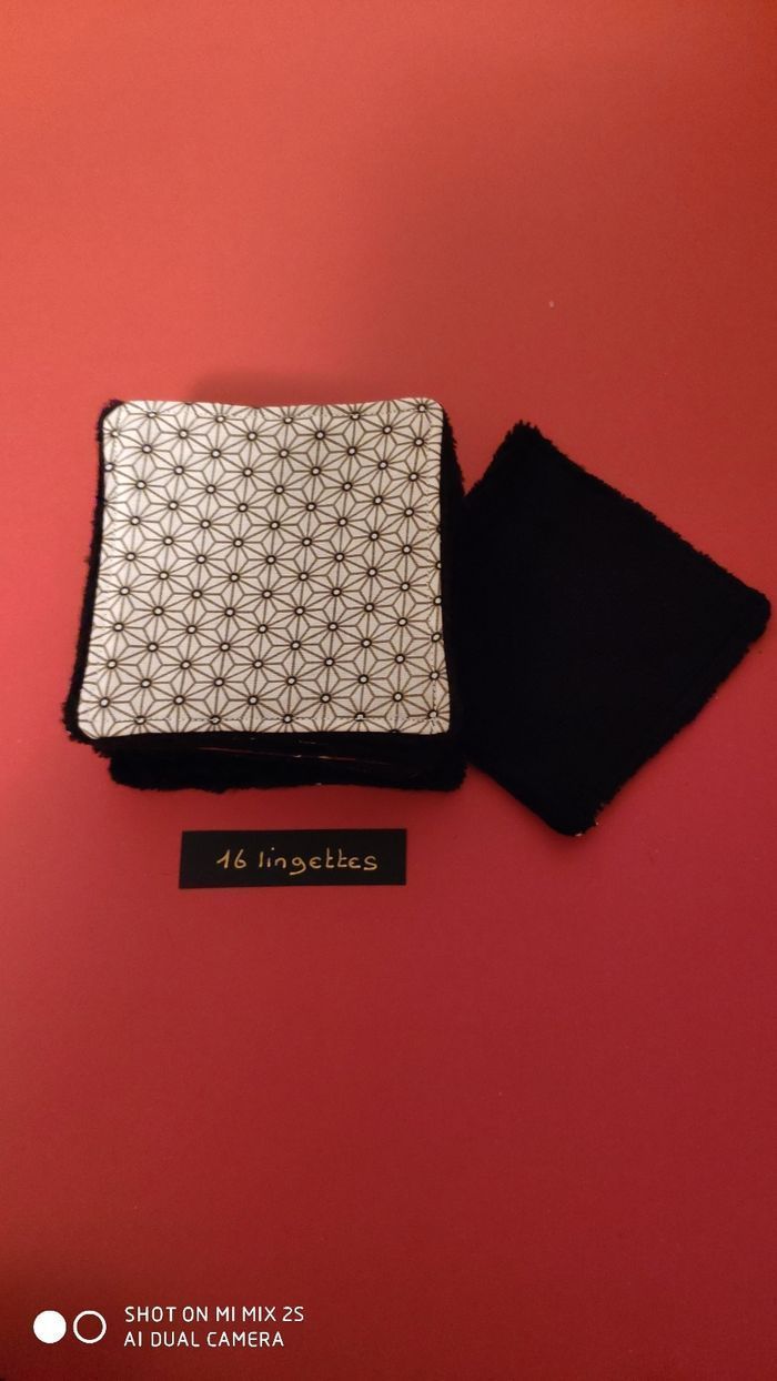 Tissu eko-tex français et éponge bambou noir, 10 X10 cm, pour bébé et démaquillante pour les mamans 😄..