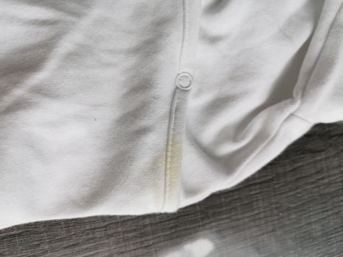 Lot de 2 pyjamas 9 mois Il y a une petite tâche au dos du blanc qui partira certainement en machine (je pense que c'est dû au carton dans lequel les pyjamas ont été stockés)