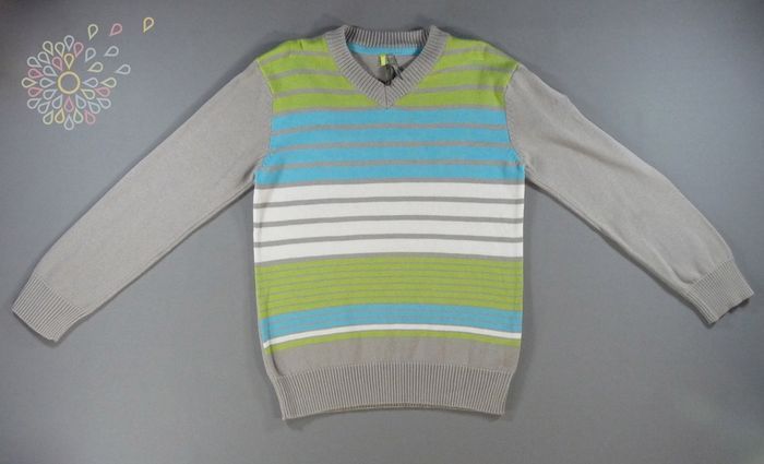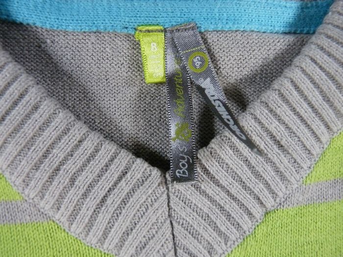 Pull tricot gris vert rayures Orchestra 8 ans 128 cm garçon