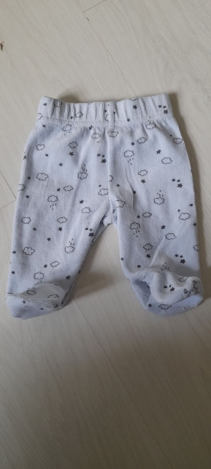 Pantalon T 1 mois Marque KIABI Couleur gris clair avec motifs Avec pieds Taille élastique Très très bon état