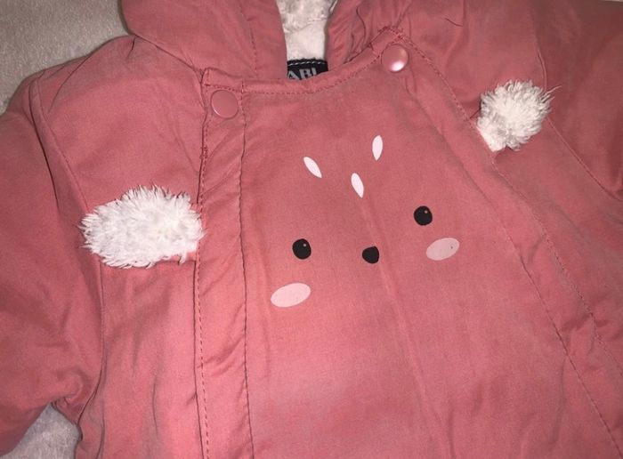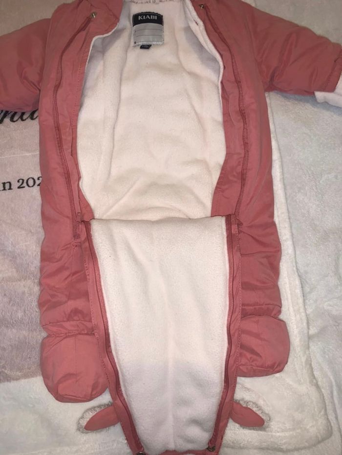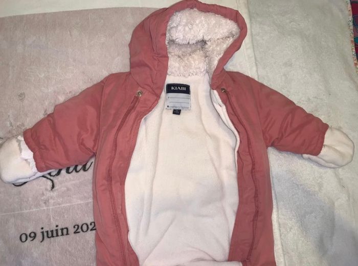 Très bon état / taille correctement 😊 2 fermetures au milieu, les pieds ne s’enlèvent pas, les moufles on peux les enlever comme sur la photo 🙃