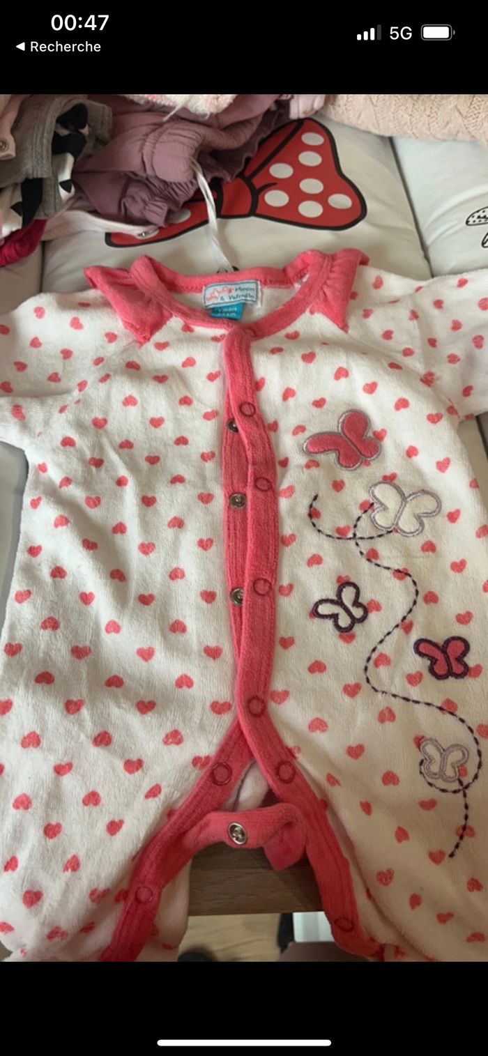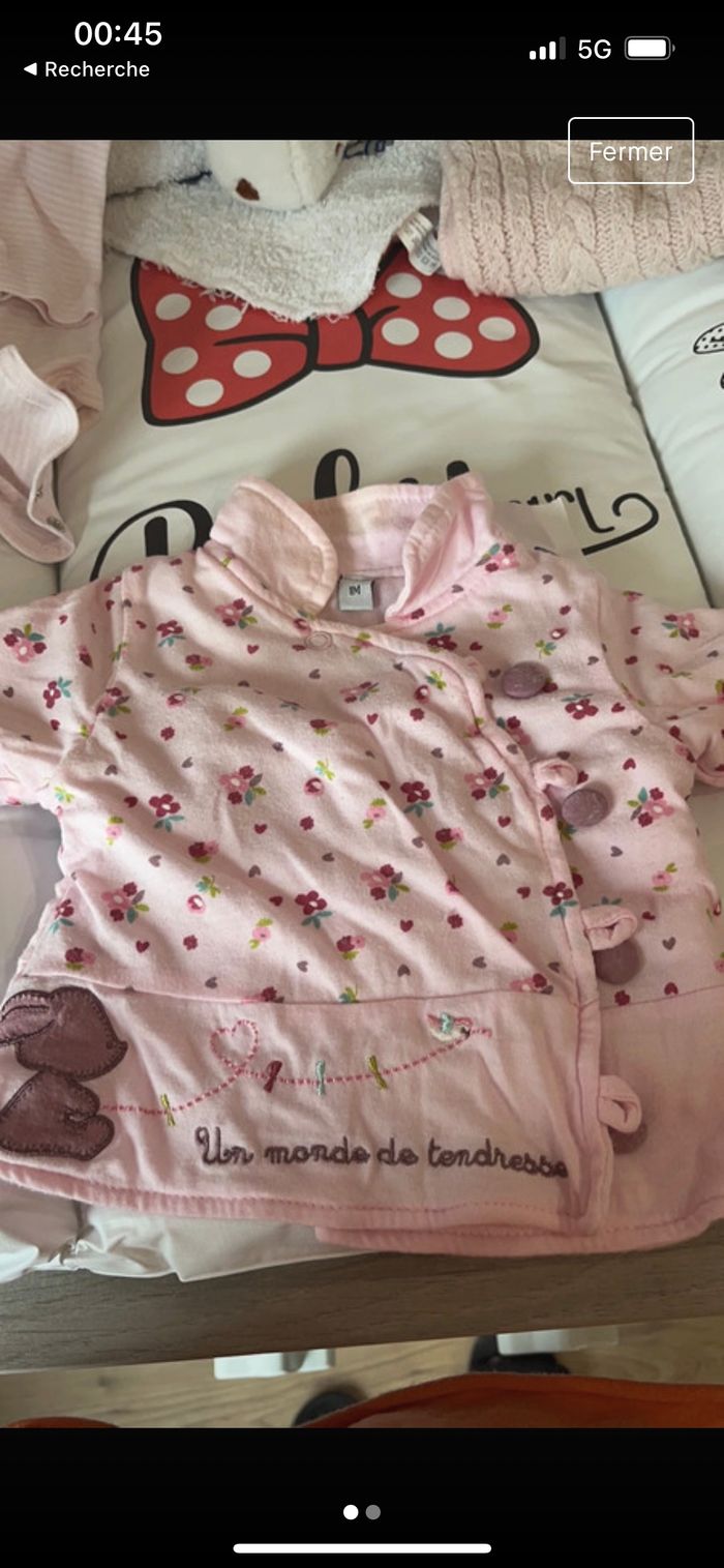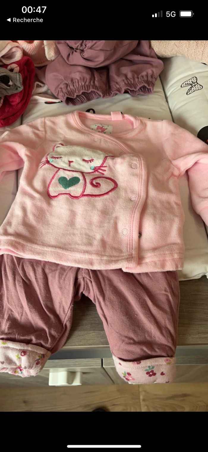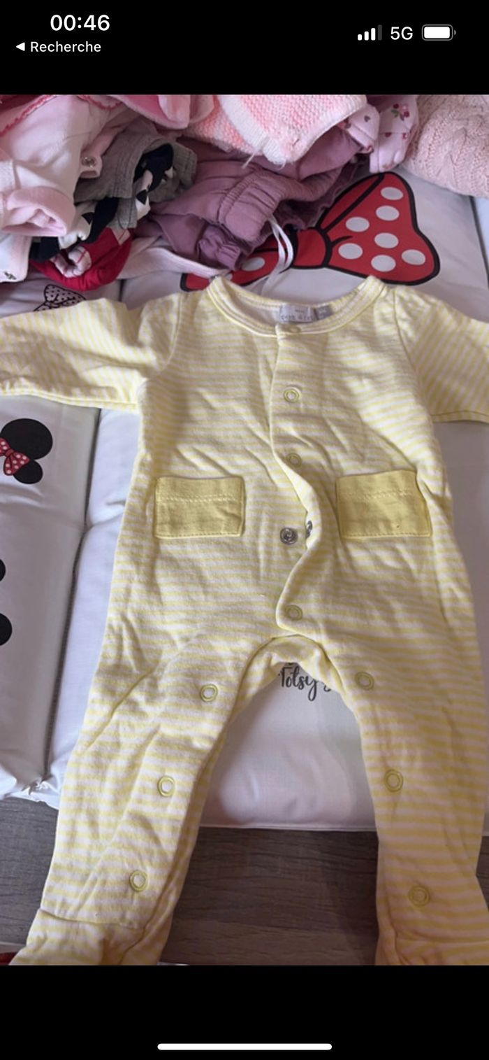 - gilet rose 1 mois - veste bébé 1 mois - pyjama jaune tape à l œil 1 mois - pyjama Kiabi 1 mois - 2 pyjama 1 violet et 1 rose Manon et Valentin 1 mois -2 gilet un blanc et un blanc et rose - un ensemble fille 1 mois