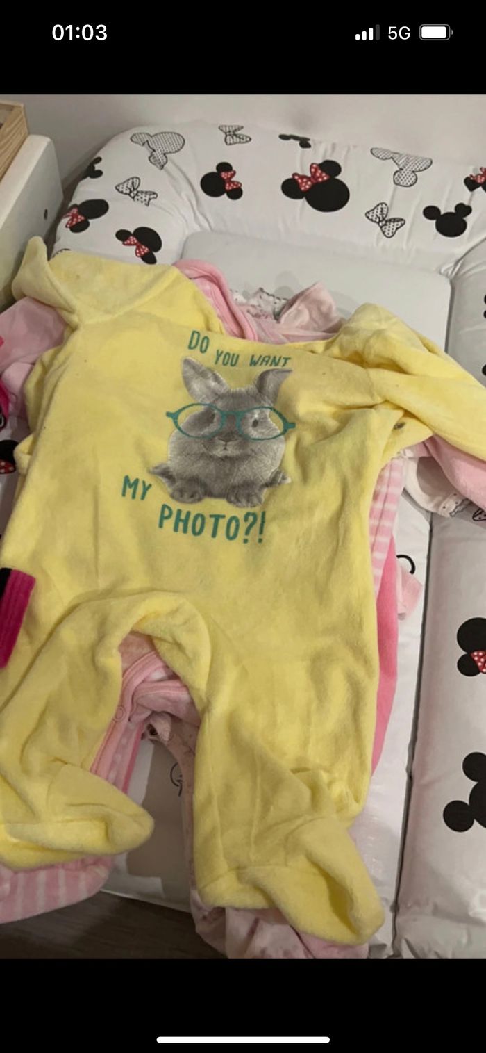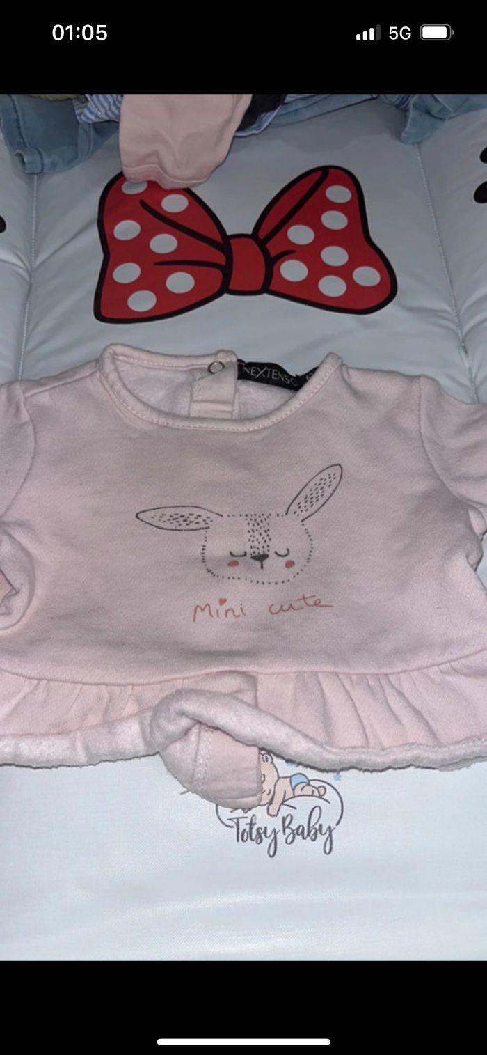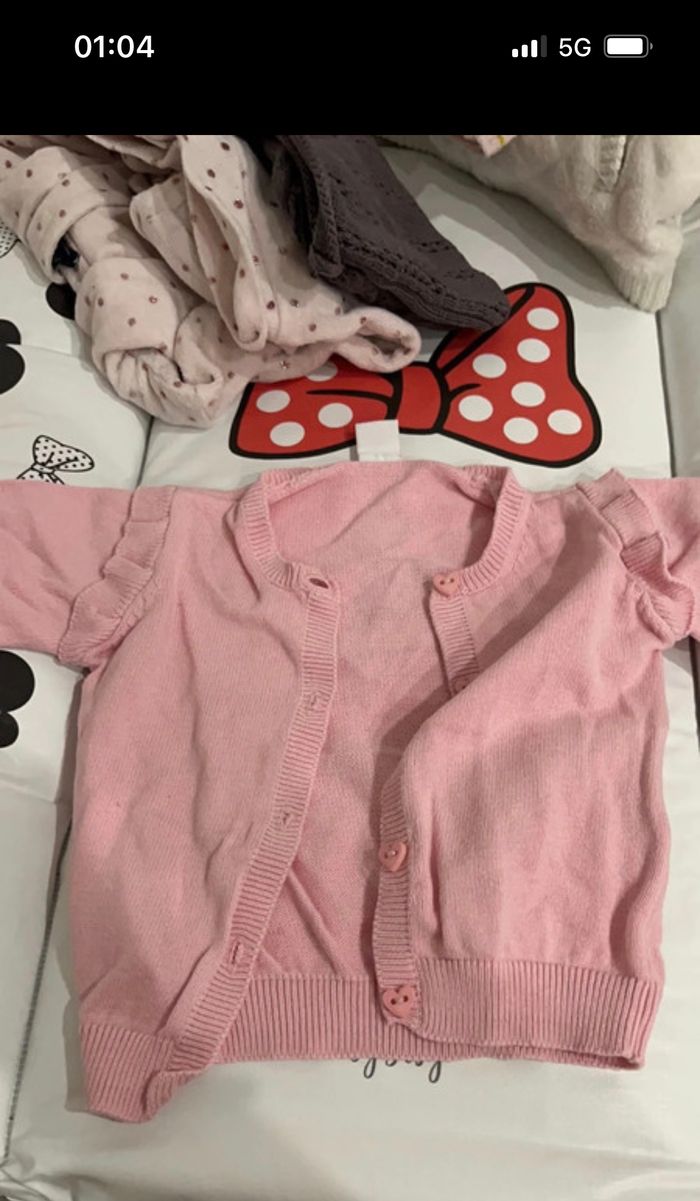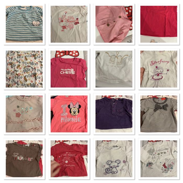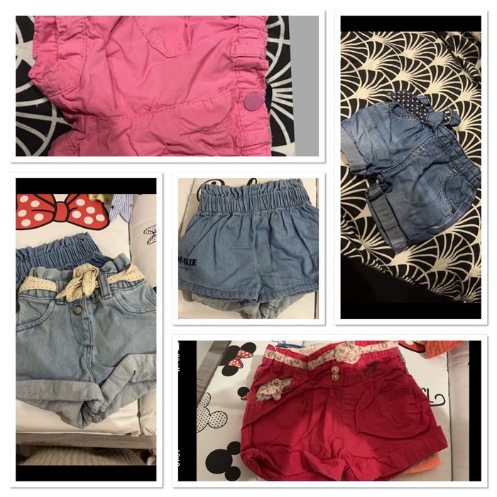 4 Short : 1 rose , 1 jean , 1 rose orchestra , 1 rouge orchestra 2 Veste manche courte en jean kitchoun et une veste rose 2 Robe en jean grain de blé et kaki fashion privâtes compagnie 1 haut hello kitty bleu 1 combi short en jean Kiabi 3 pantalon dont 1 gris in extenso , 1rose obaibi , 1 pantalon jogging rose 1 pull in extenso 5 haut manche courte marque inconnue 1 leeging jaune primark 1 bas de pyjama 4 short dont un sergent major et un Kiabi 2 short en jean un Disney et un Kiabi 10 haut manche longue : kitchoun, Disney, petit kimbaloo, tape à l oeil , compagnie des petit 10 pyjama Dès gilet Une veste Disney N’hésitez pas a demandée les photos des 50 articles, possibilité de vendre à l unité