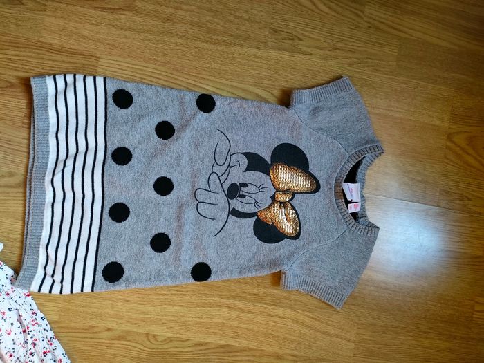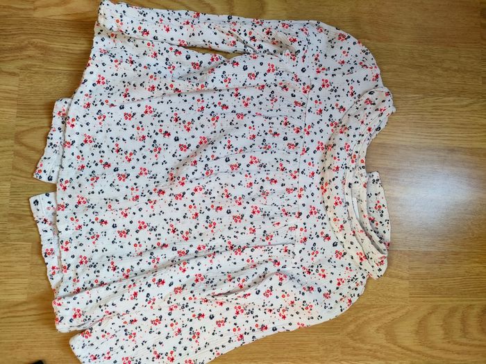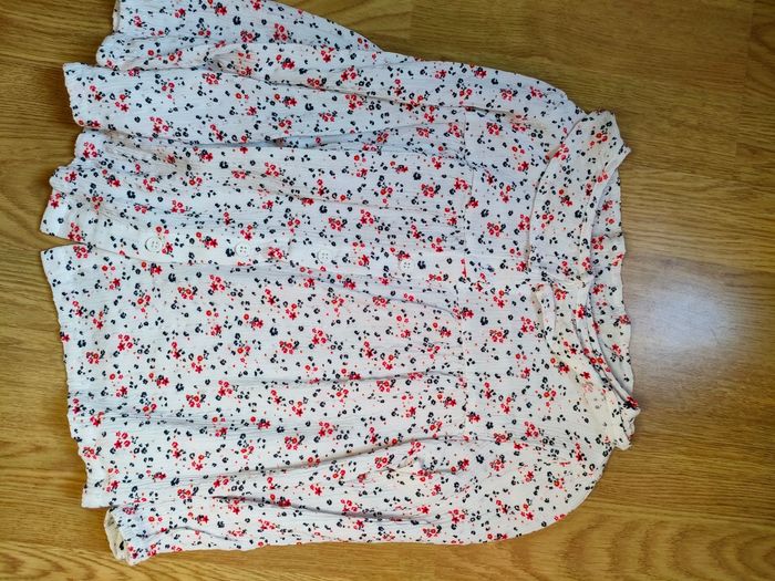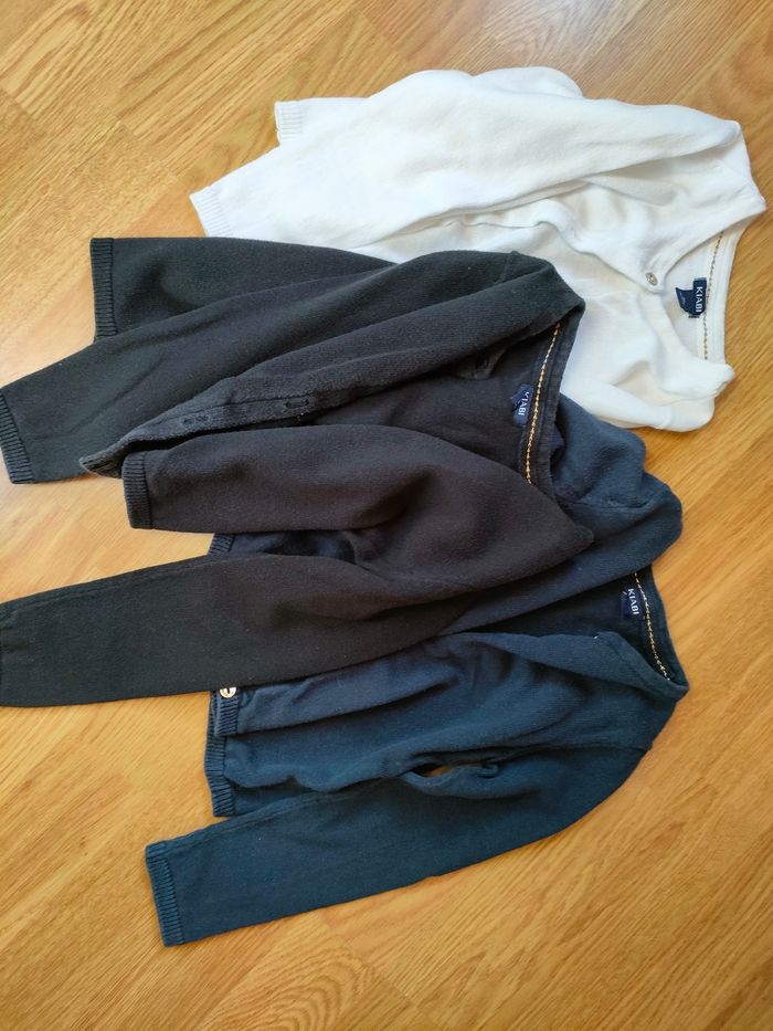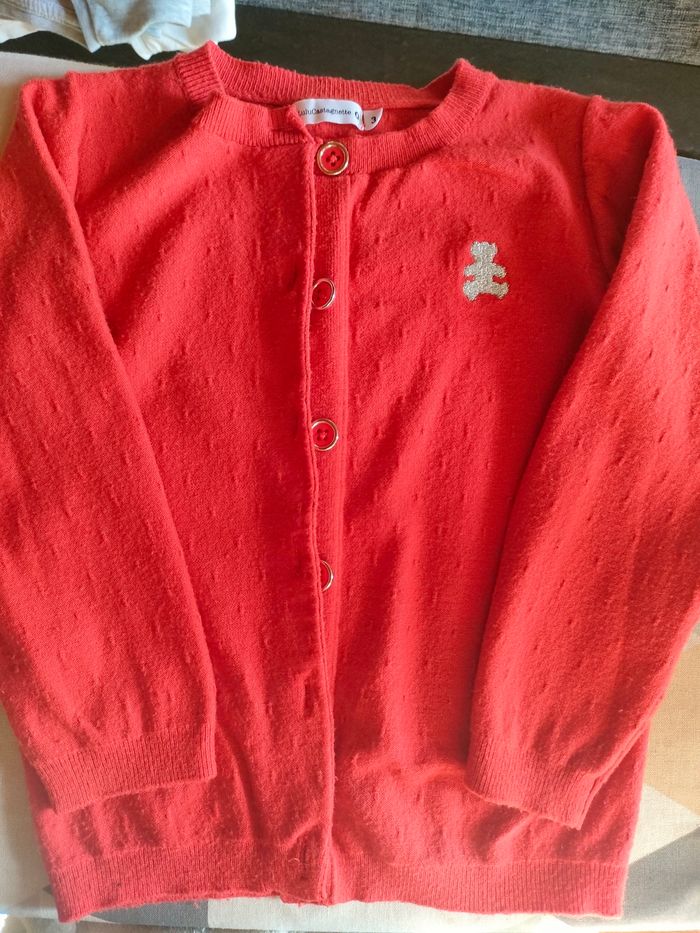 3 gilets Kiabi blanc bleu noir 1 chemisier lulu castagnette bouton dans le dos 1 robe Orchestra 1 gilet lulu castagnette