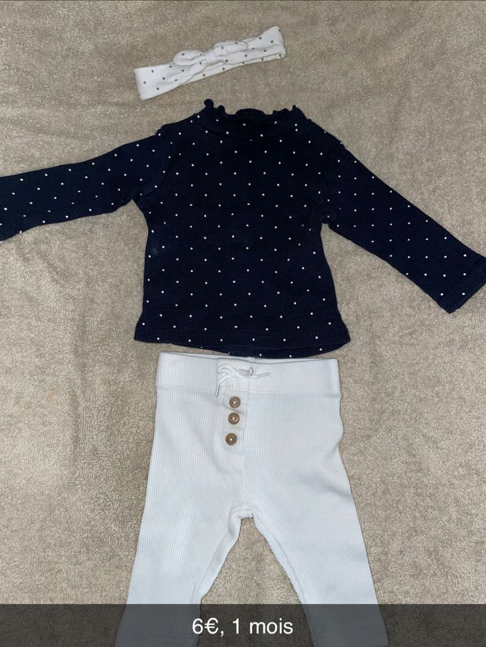 Ensemble blanc et noir avec bandeau kiabi taille 1 mois.