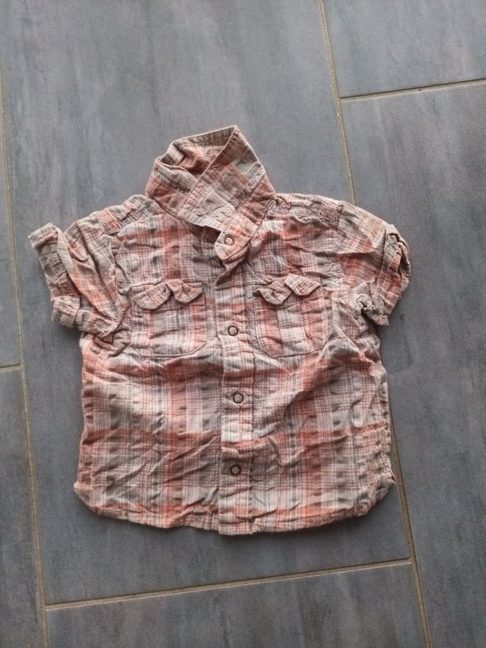 Bonjour je vend une chemise couleur orange et manrron taille 6 mois