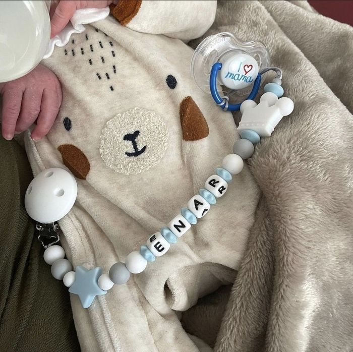 Attache tétine personnalisée Couleur et Modèl a choisir selon stock disponible 😊 Les perles sont en silicone adaptés pour bébé et conforme aux normes de l'UE. Pour la sécurité de votre enfant, toutes les attaches tétines ne dépasseront pas la taille réglementaire de 22 cm de long. (NF EN 12586 + A1) Nettoyage je vous conseille de laver à l'eau clair, ou au vinaigre uniquement ! ❌️ pas de JAVEL . N'hésitez pas à ma laisser un message avant de valider