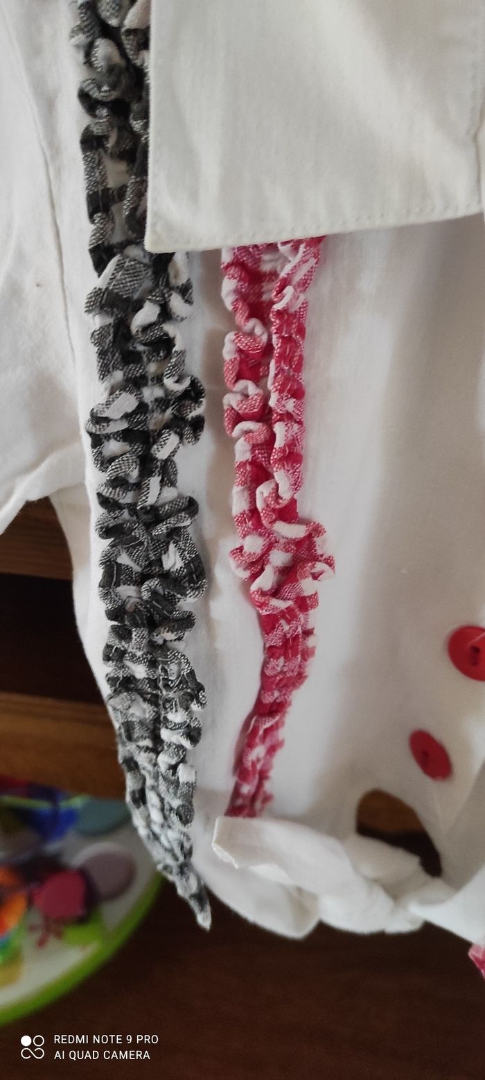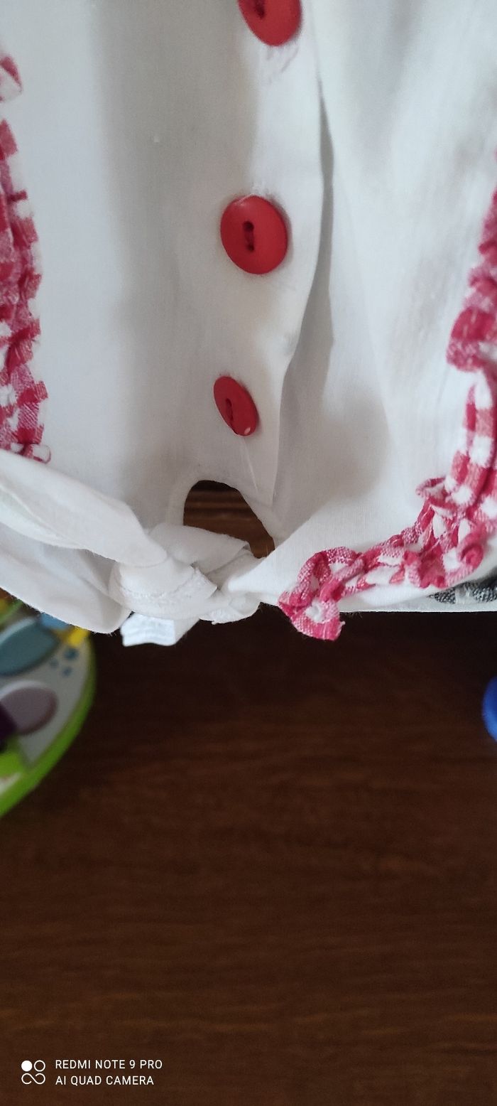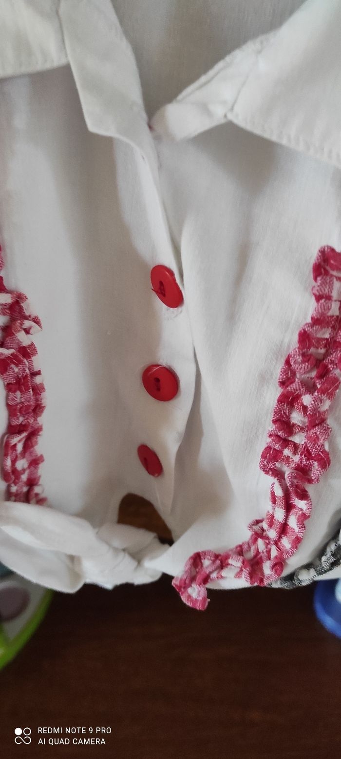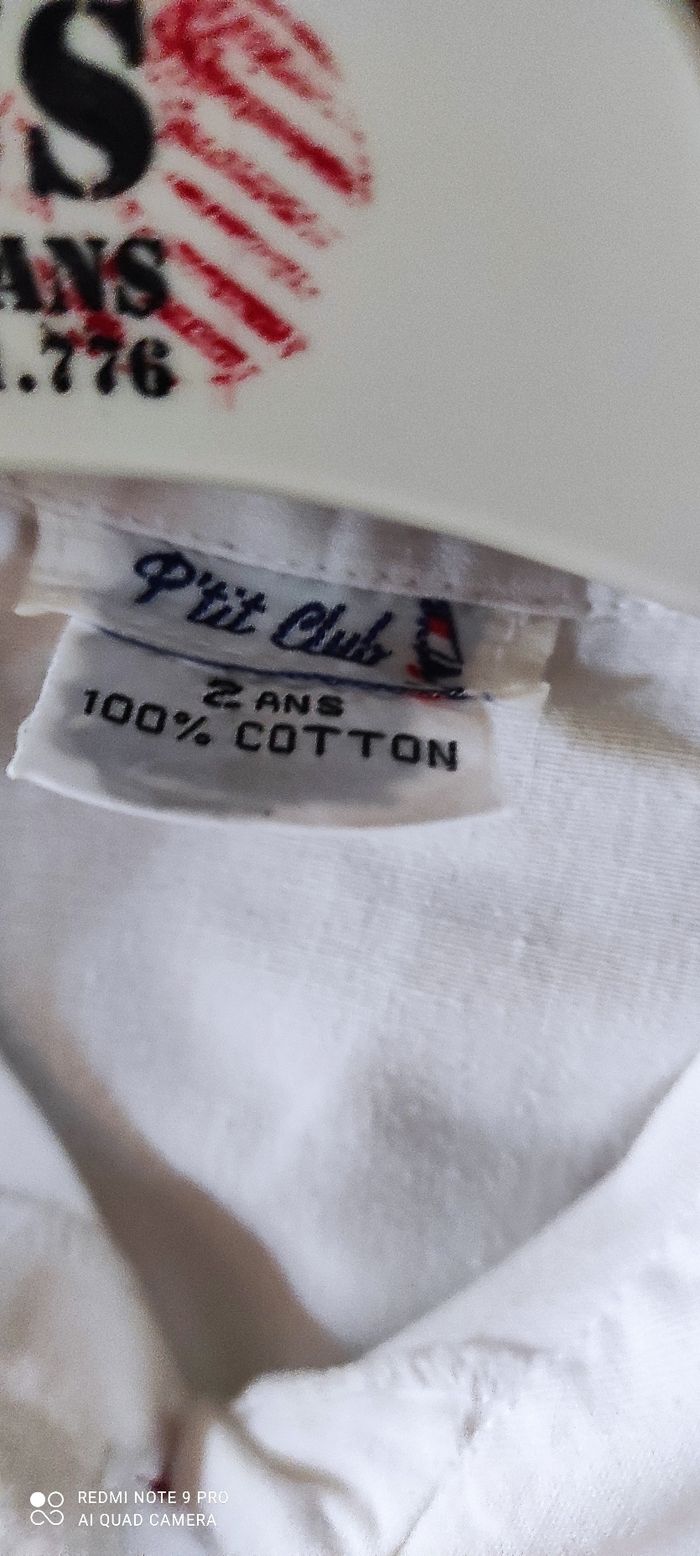 Chemisier avec petit noeud en bas de la chemise. Quelques tâches jaunâtre qui se voie à peine. Taille 2 ans.