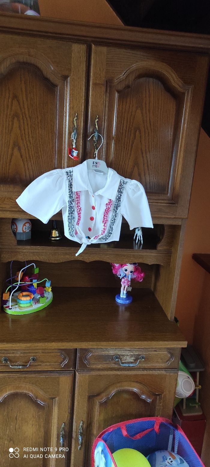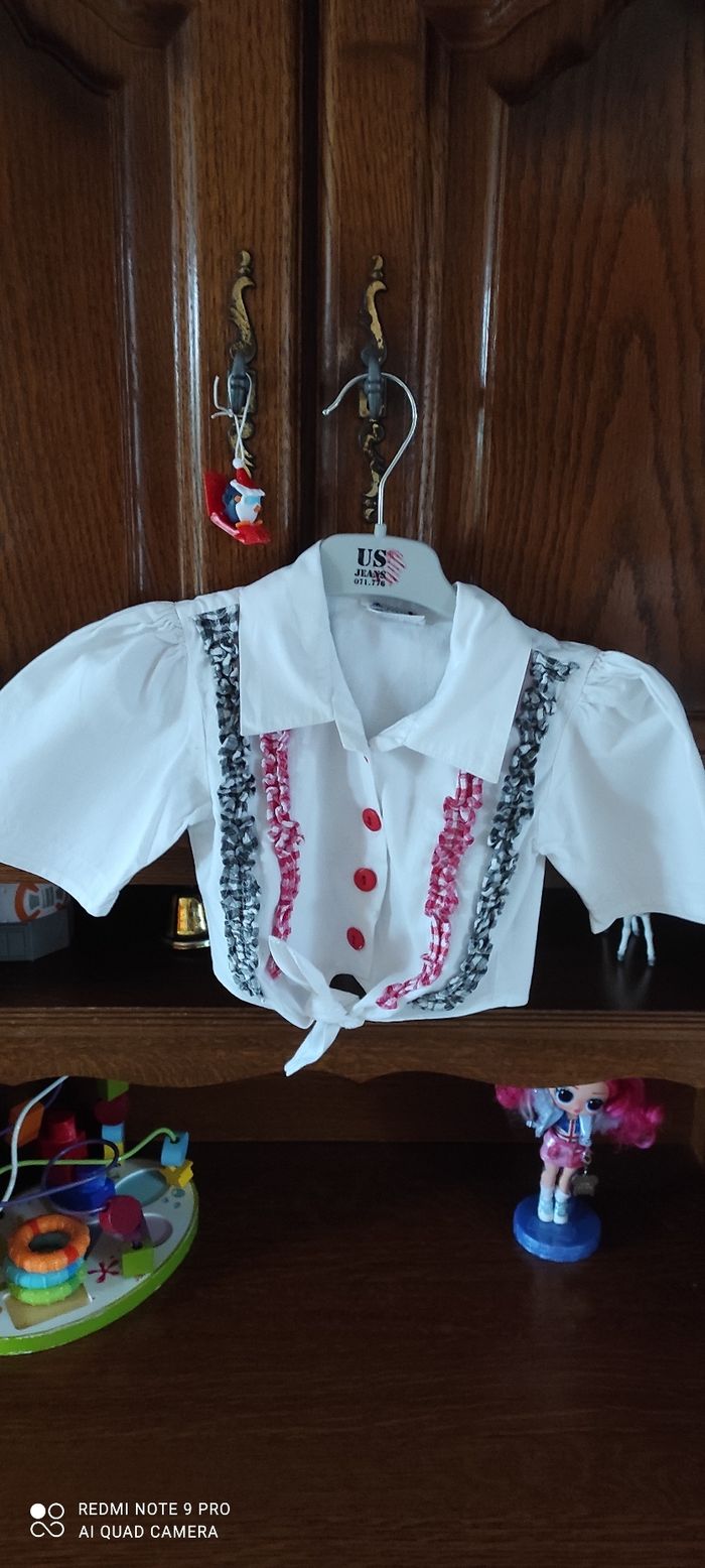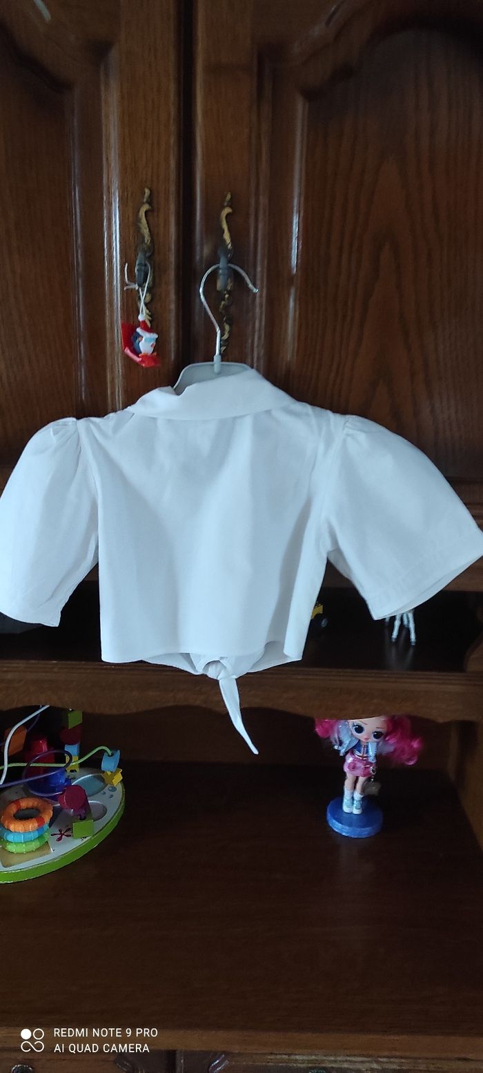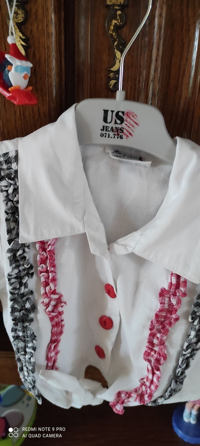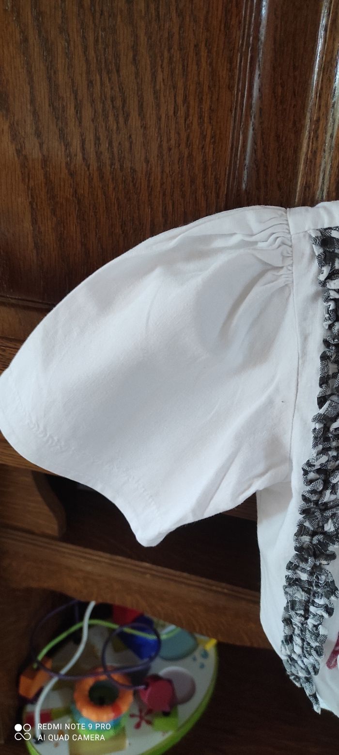 Chemisier avec petit noeud en bas de la chemise. Quelques tâches jaunâtre qui se voie à peine. Taille 2 ans.