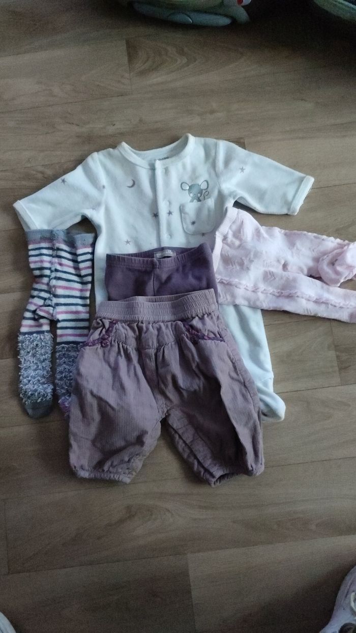 Pyjama Verbaudet tbe 1 mois 2 collants rose et rayé violet/gris motif Marque grains de blé et obaibi t 13/14 ou 0/6mois Pantalon mauve doublé en velours 0 mois (porté à deux mois pour ma fille)